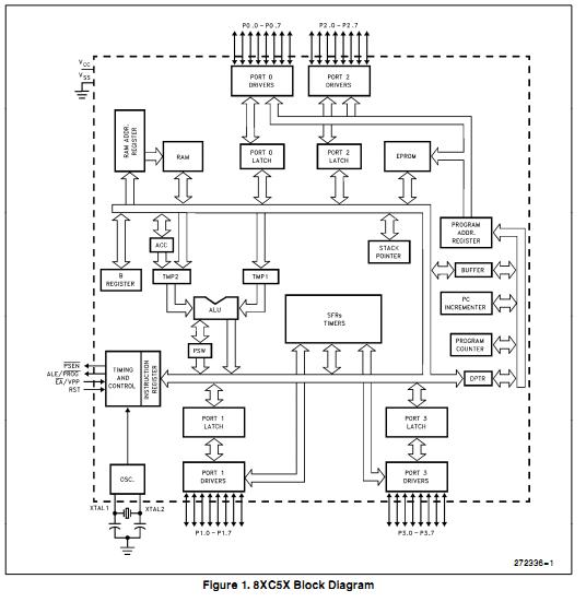 The D87C52-1 is a single-chip control-oriented microcontroller which is fabricated on Intel’s reliable CHMOS III-E technology. Being a member of the MCS 51 family of controllers, the D87C52-1 uses the same powerful instruction set, has the same architecture, and is pin-for-pin compatible with the existing MCS 51 family of products. The added features make it an even more powerful microcontroller for applications that require clock output, and up/down counting capabilities such as motor control. The D87C52-1 also has a more versatile serial channel that facilitates multi-processor communications.