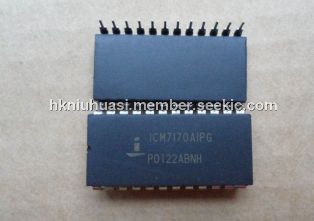 The ICM7170AIPG real time clock is a microprocessor bus compatible peripheral, fabricated using Intersils silicon gate CMOS LSl process. An 8-bit bidirectional bus is used for the data I/O circuitry. The clock ICM7170AIPG is set or read by accessing the 8 internal separately addressable and programmable counters from 1/100 seconds to years. The counter is controlled by a pulse train divided down from a crystal oscillator circuit, and the frequency of the crystal is selectable with the onchip command register. An extremely stable oscillator frequency of the ICM7170AIPG is achieved through the use of an on-chip regulated power supply. The ICM7170AIPG access time (tACC) of 300ns eliminates the need for wait states or software overhead with most microprocessors. Furthermore, an ALE (Address Latch Enable) input is provided for interfacing to microprocessors with a multiplexed address/data bus. With these two special features, the ICM7170AIPG can be easily interfaced to any available microprocessor. It is intended for Portable and Personal Computers, Data Logging, Industrial Control Systems and Point Of Sale.