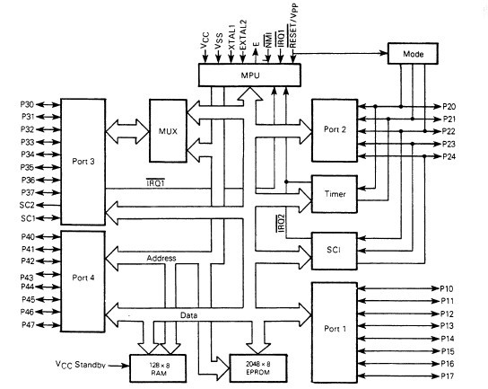 MC68701U4S-1 features: (1)Enhanced MC6800 Instruction set; (2)8*8 Multiply instruction; (3)serial communications interface; (4)upward source and object code compatibility with the MC6800; (5)16 bit three function programmable timer; (6)single chip or expanded operation to 64K byte address space; (7)bus compatibility with the M6800 Family; (8)2048 bytes of UV Erasable, User programmable ROM; (9)128 bytes of RAM; (10)29 parallel I/O and Two handshake control lines; (11)Internal clock generator with divide by four output; (12)-40 to 85℃ temperature range.